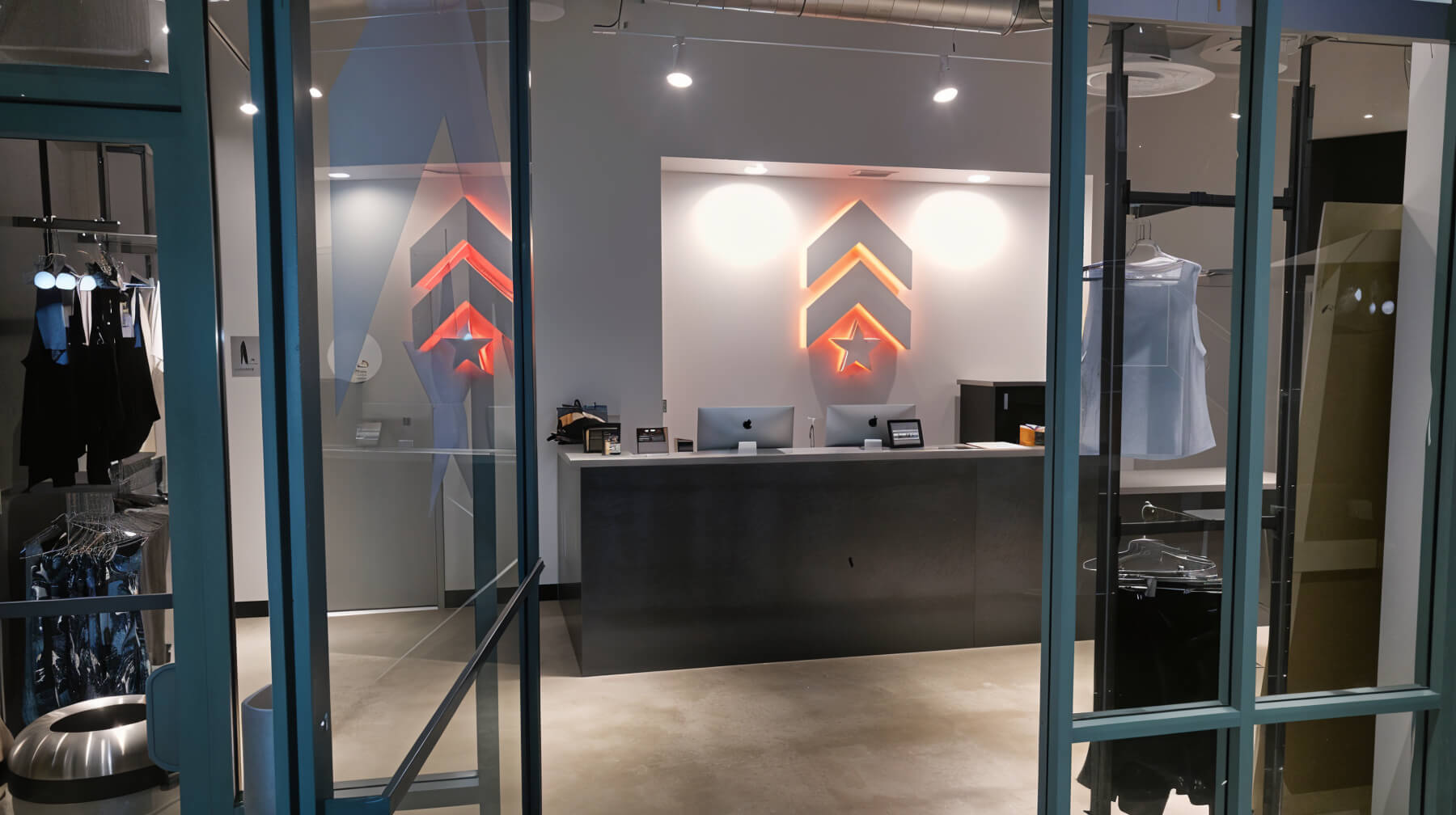 Inside the revamped Red Room, programmable LED strips sync with music, mirror-clad walls double perceived volume, and an acoustic ceiling tempers reverberation. Alternating rows of bespoke treadmills and benches create clear sight-lines for coaches while streamlining participant flow. At the entrance, a re-engineered reception and retail hub features powder-coated steel shelving, polished concrete flooring, and full-height glazing that floods the space with natural light.