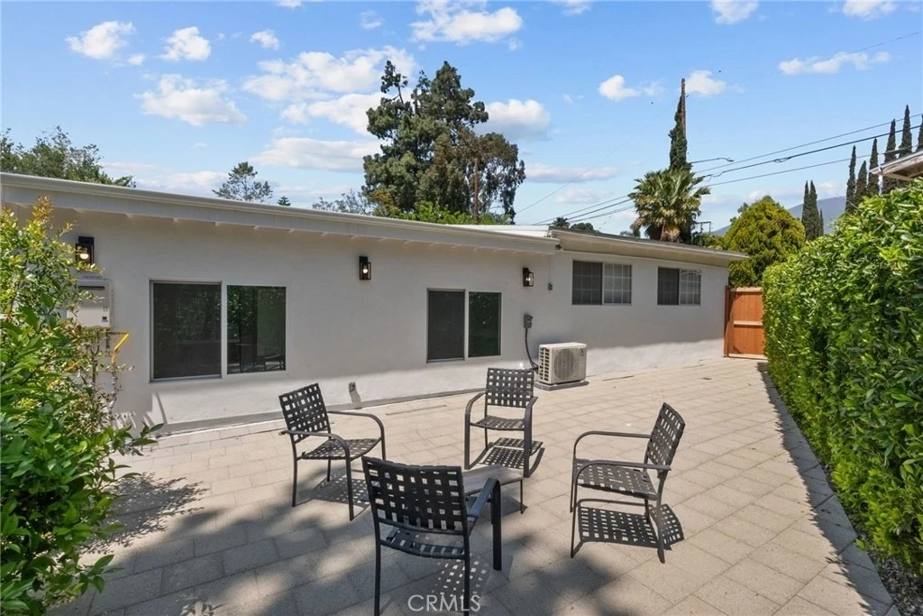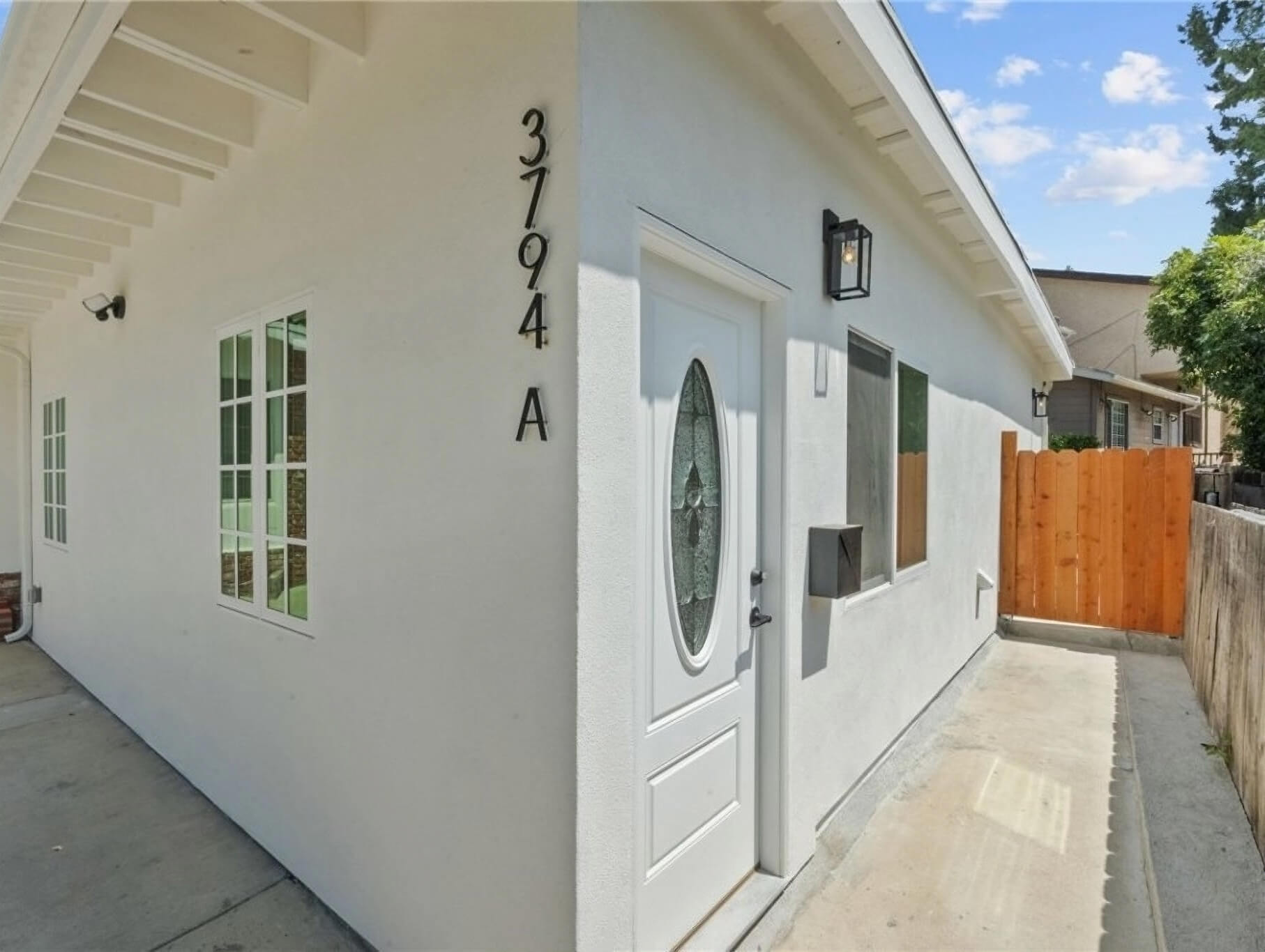 Tucked behind a classic foothill residence, this just-built ADU blends fresh white stucco with a private, hedge-lined patio for true lock-and-leave living.