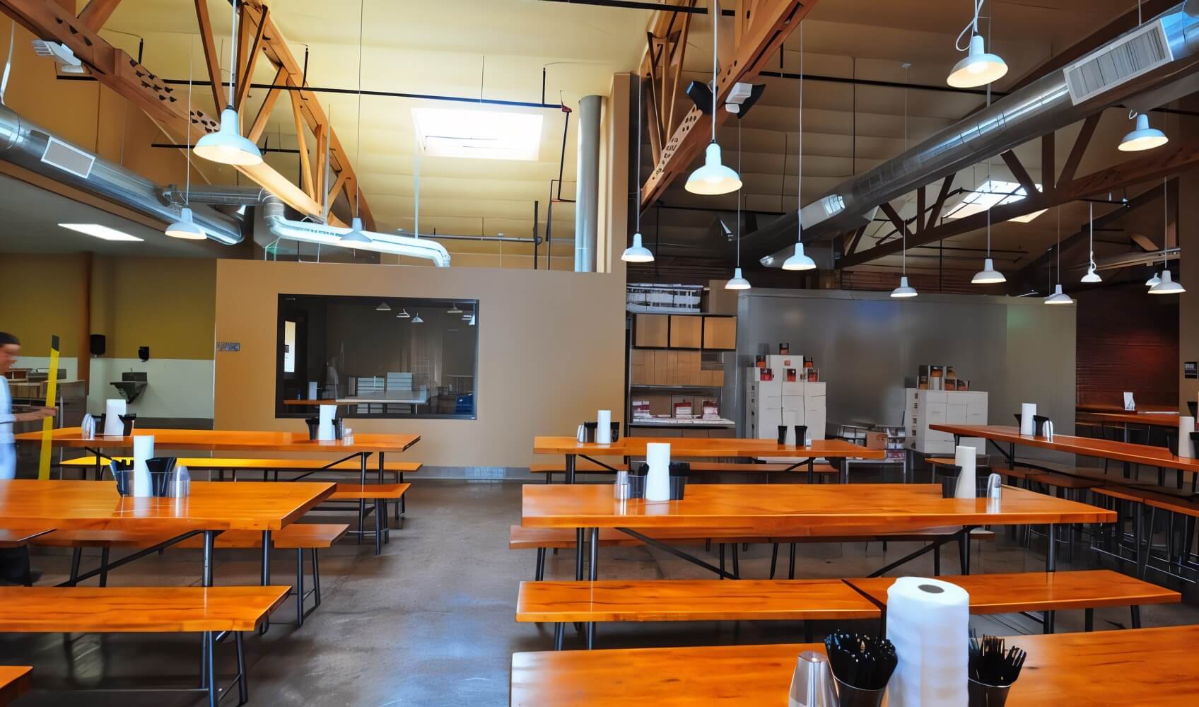 Custom make‑up air and scrubber stacks tame 900 ° F oven exhaust without compromising aroma; seismic bracing, a 1,200‑gal grease interceptor and ADA‑compliant restrooms future‑proof the venue. Energy‑efficient LED pendants hang from forged chain, highlighting locally quarried basalt mosaics that reference Neapolitan streets. Completed on schedule in 2018, the project proves a hard‑working garage can become Los Angeles’ premier slice of southern Italy.