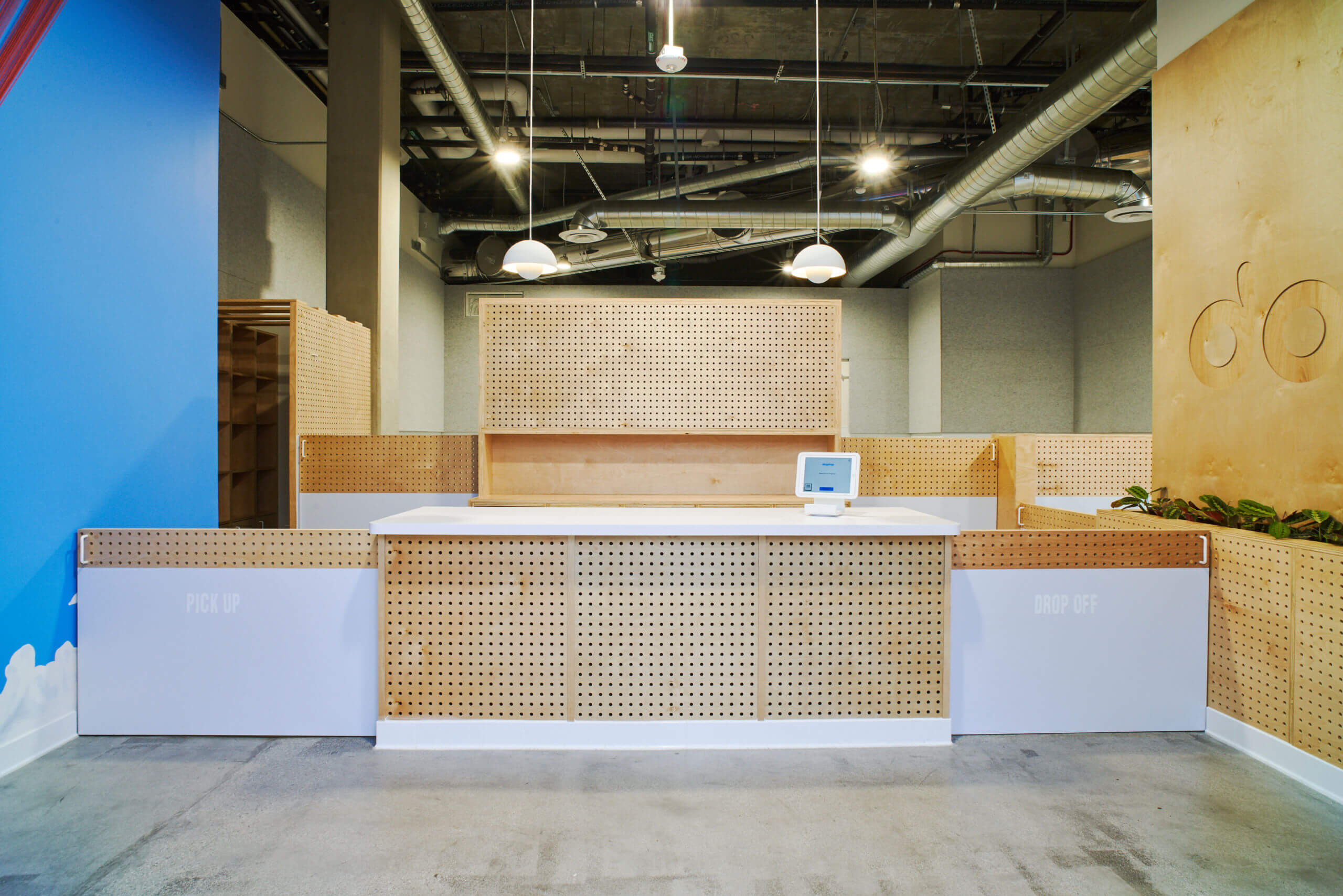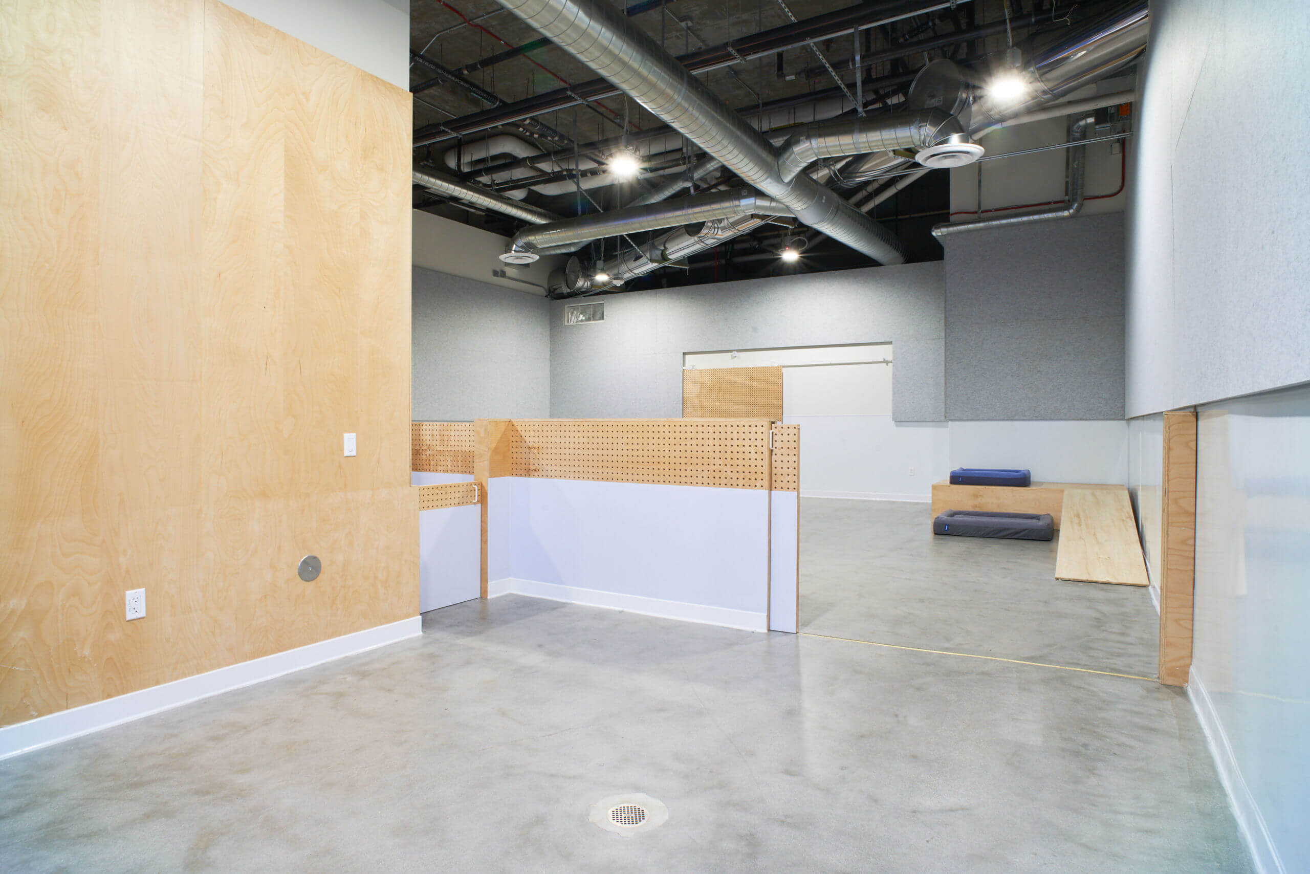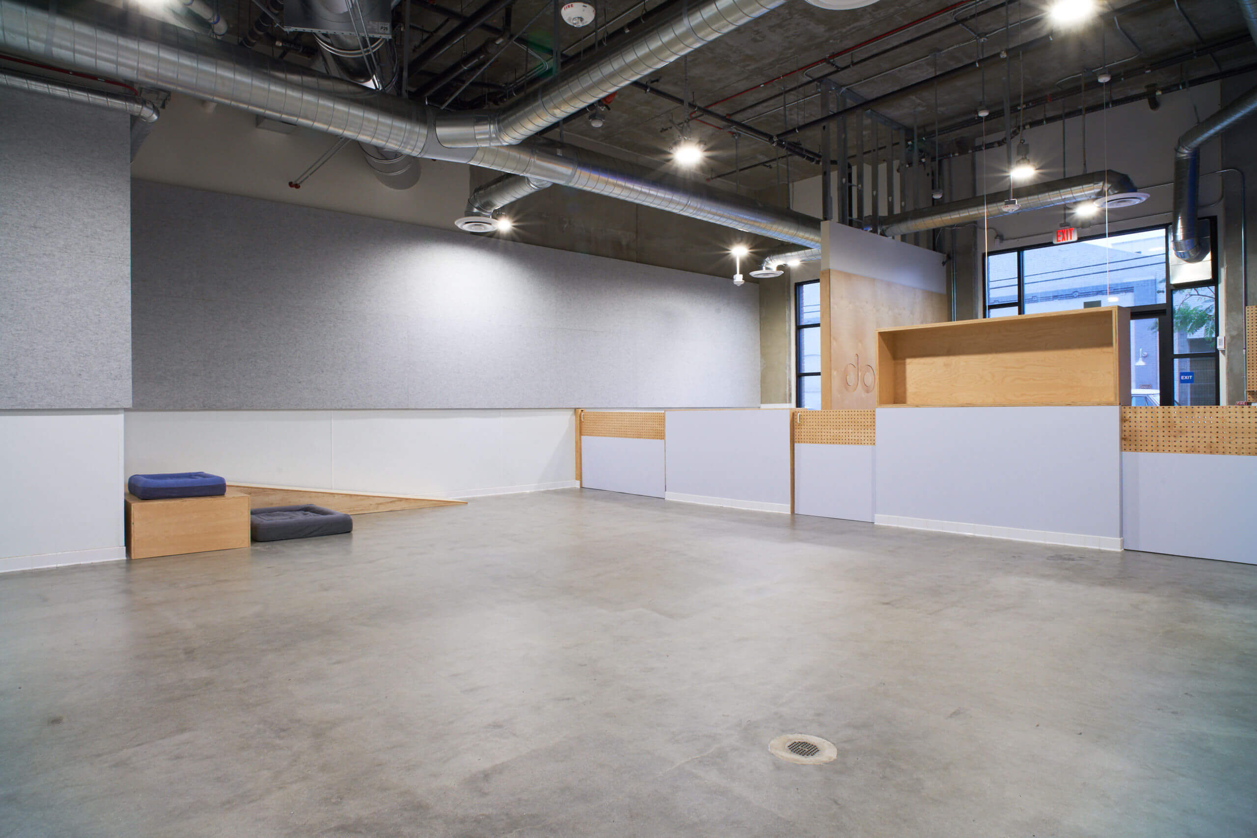Working to accelerated timelines and stringent animal‑care codes, we delivered an interior that balances durability with playful, tech‑forward style. Exposed ductwork, polished concrete and perforated birch‑ply panels echo the Arts District’s industrial character, while upgraded ventilation, floor drains and washable wall cladding support rigorous hygiene. Half‑height partitions create clear sightlines for staff, and integrated planters soften the minimalist palette.