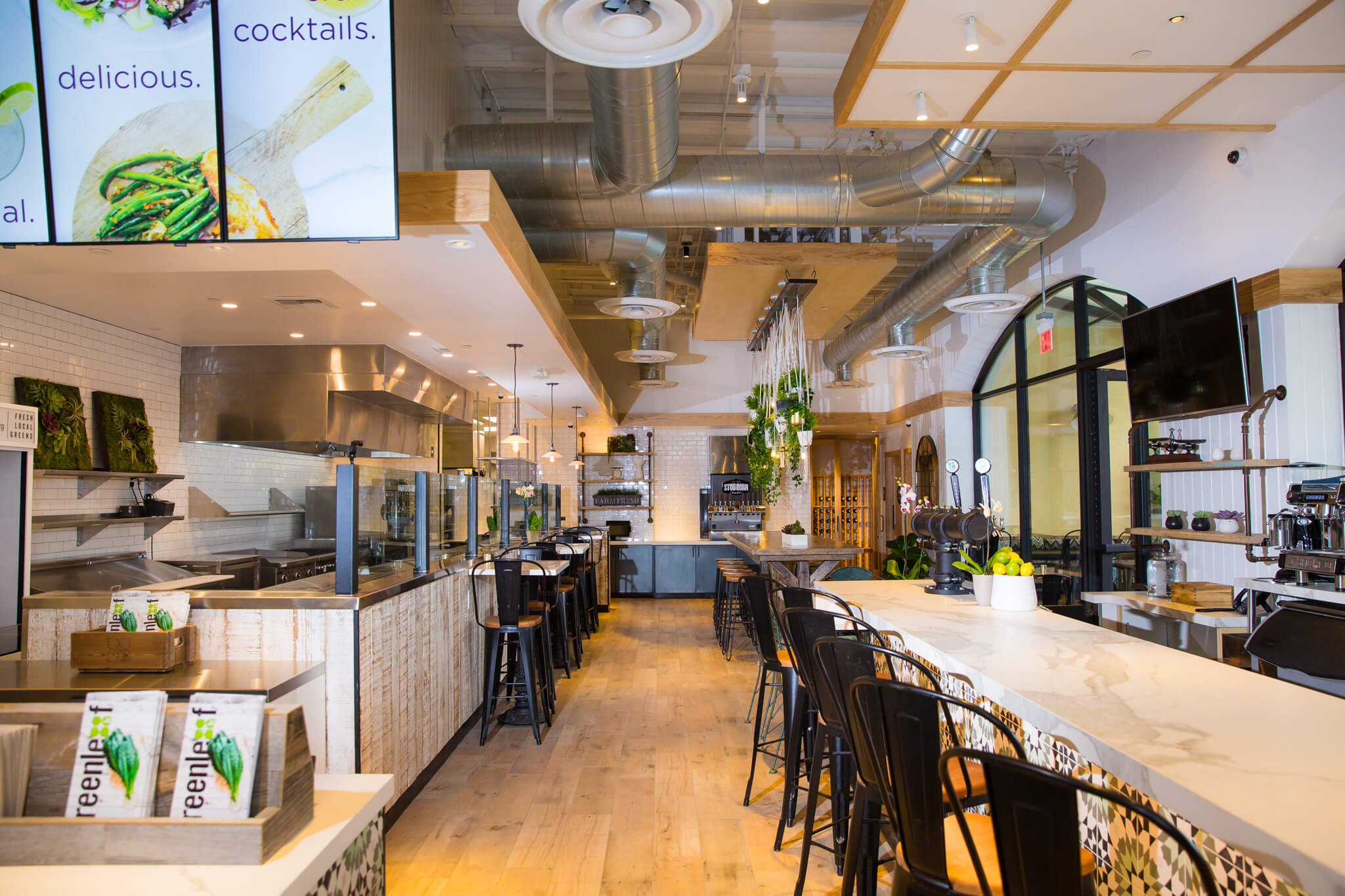 Set within The Commons at Calabasas, Greenleaf brings its farm‑to‑table ethos to a Mediterranean‑style storefront flanked by leafy patios. Athena delivered a warm, garden‑inspired interior that celebrates fresh, California dining while maximising throughput for a high‑volume service model.