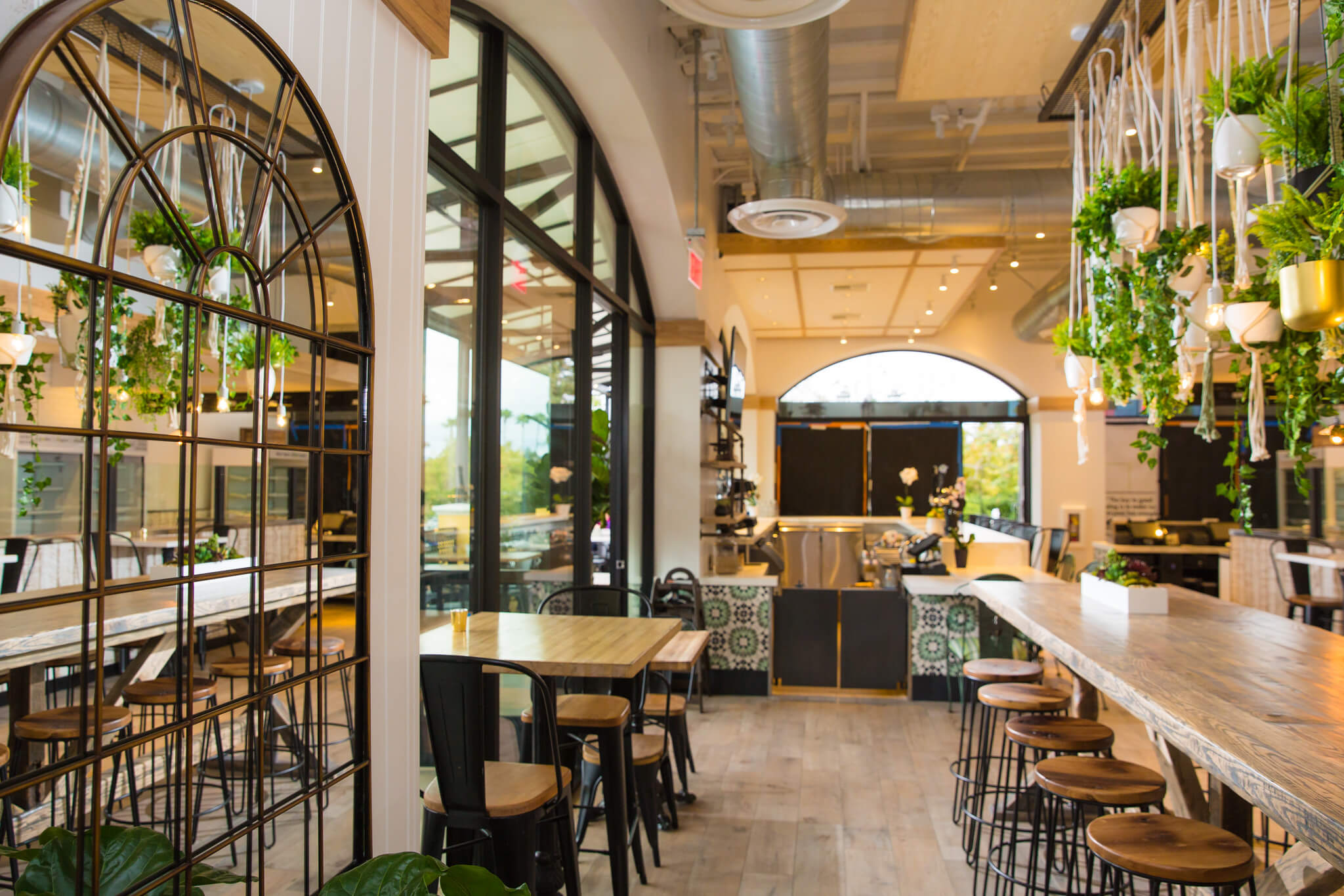 Functionality drives the details: overhead macramé planters soften acoustics, polished‑oak stools are stackable for events, and a linear pass expedites order flow during peak lunch rush. Low‑VOC finishes, LED lighting and locally sourced timbers reduce environmental impact, aligning with the brand’s ‘eat well – live well’ philosophy. Delivered on schedule and within budget, the Calabasas outpost quickly became the chain’s flagship in the San Fernando Valley – a testament to thoughtful value engineering and seamless collaboration between our construction team, franchise designers and centre management.