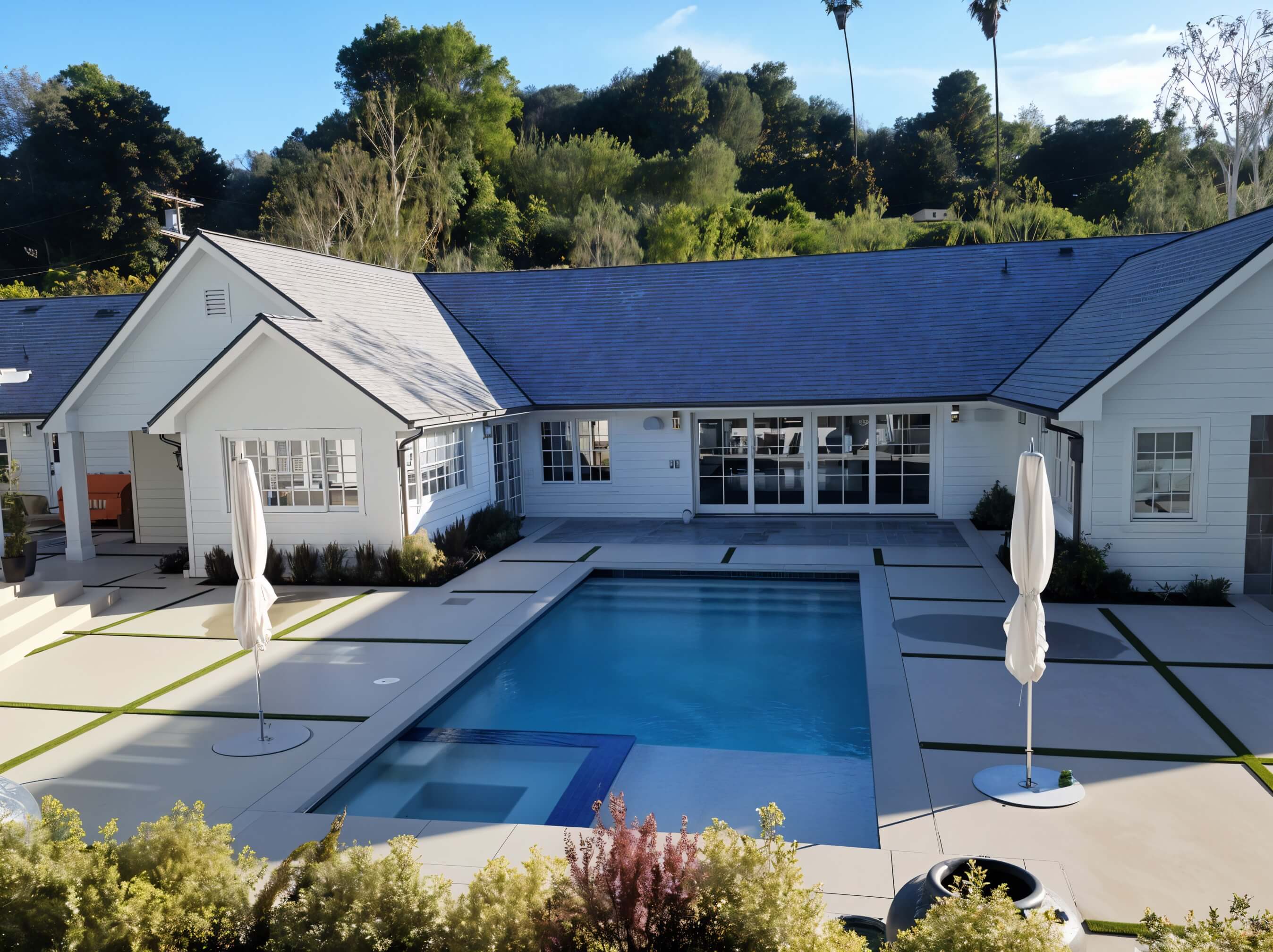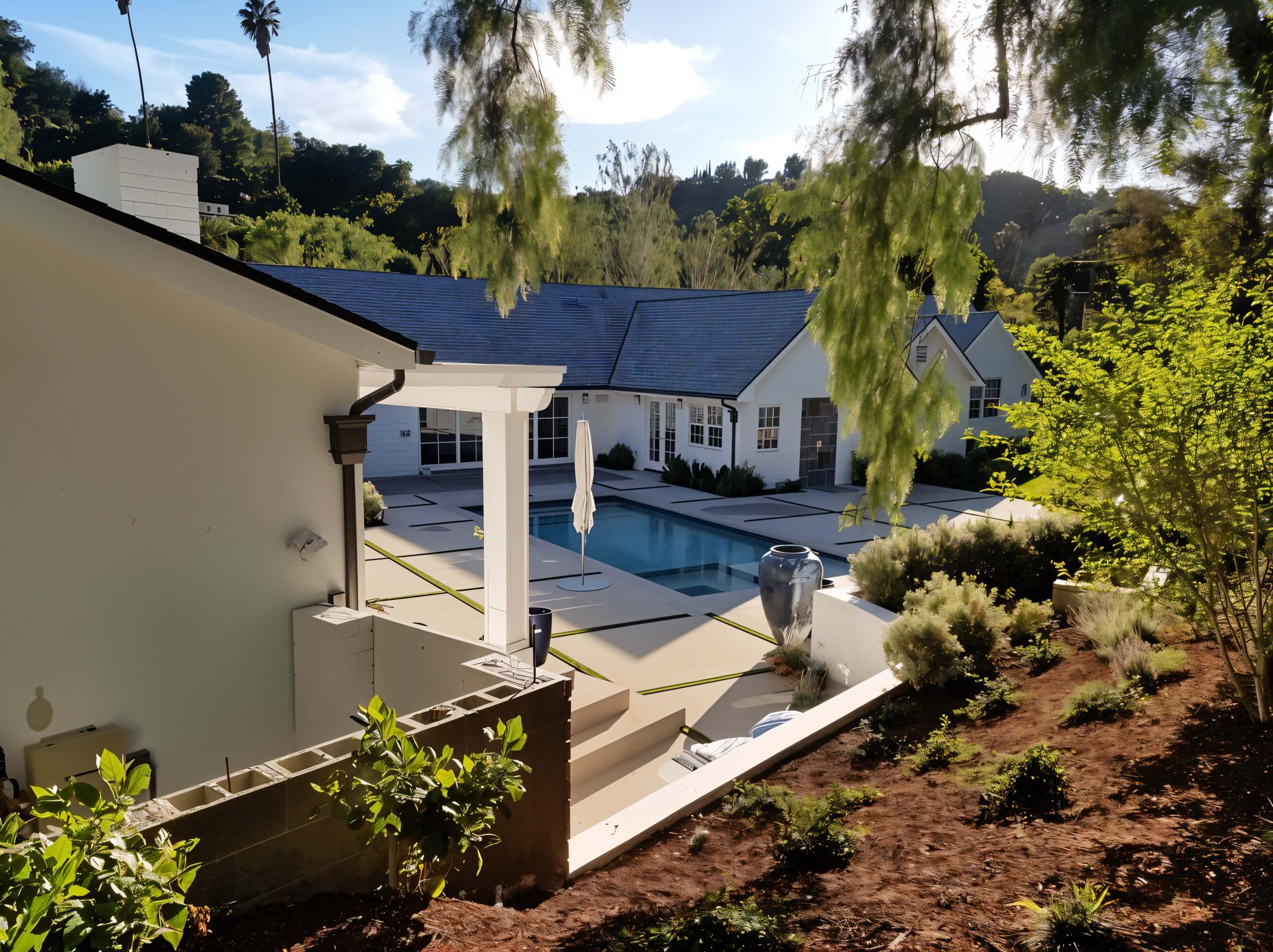 A dated valley-side ranch was reborn as a bright coastal-style retreat — pairing expanded interiors with a re-imagined pool terrace and layered gardens.