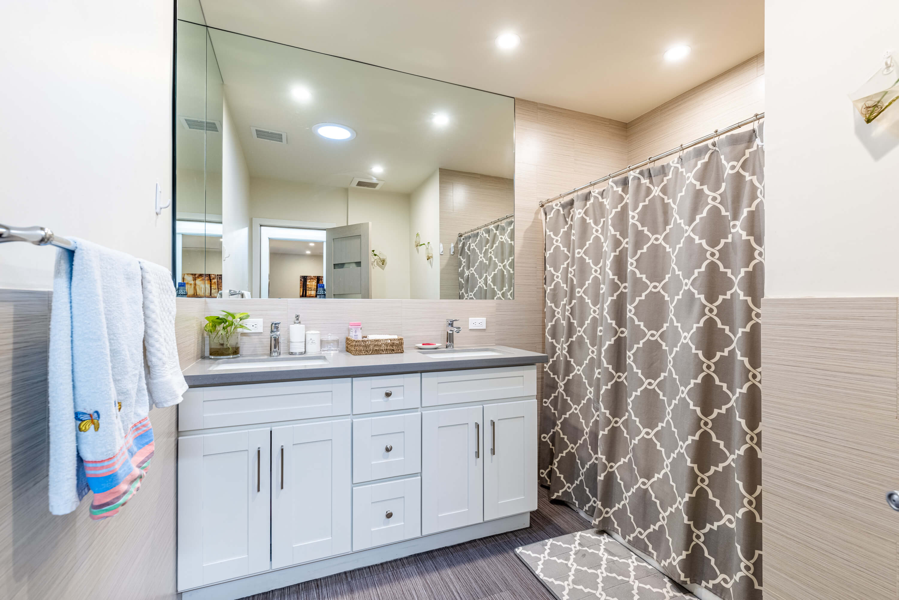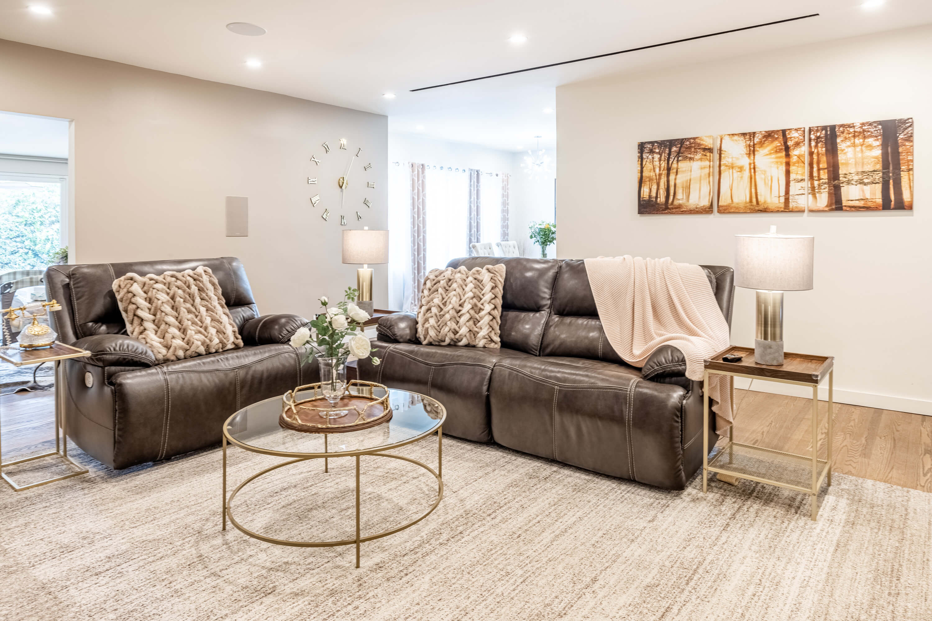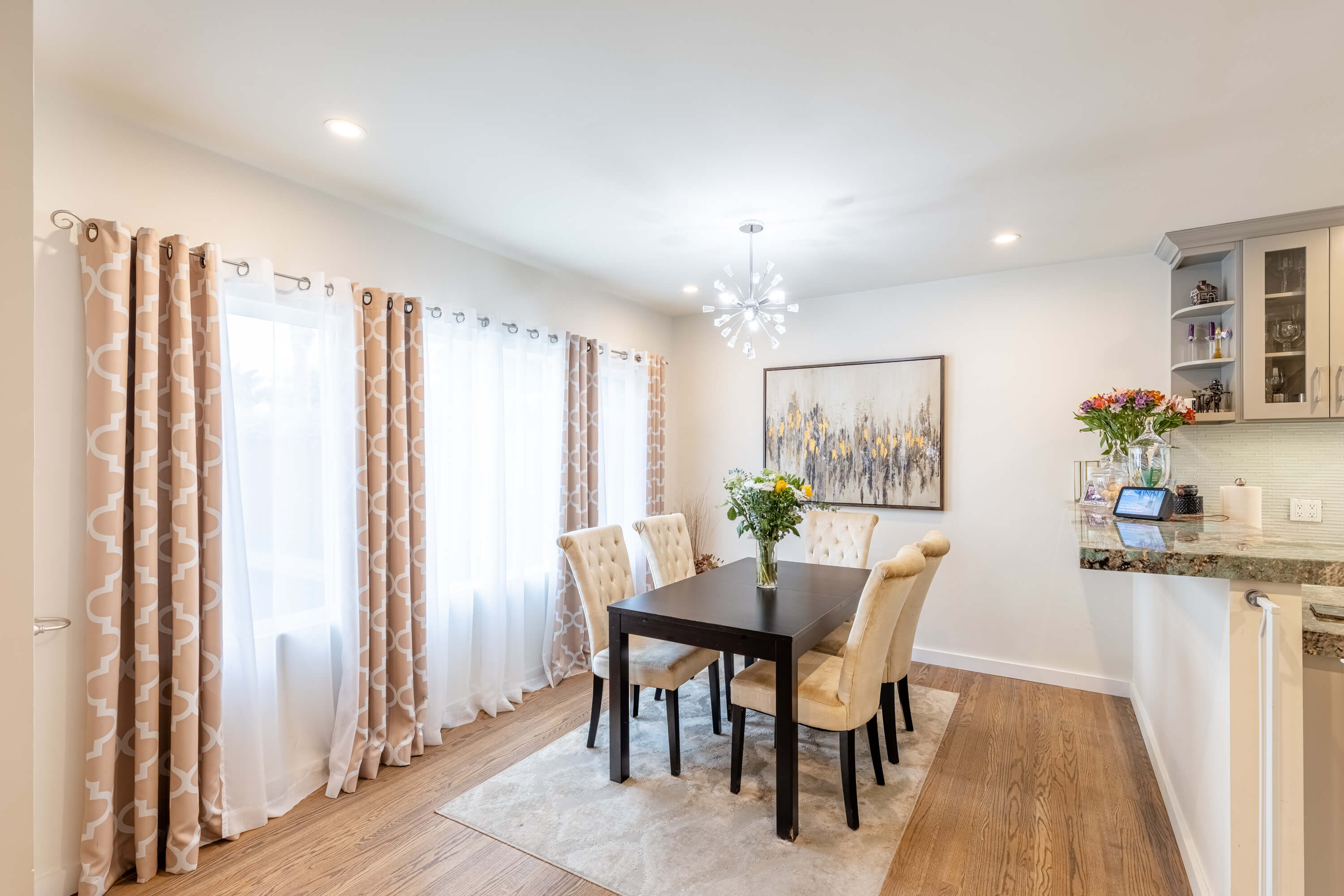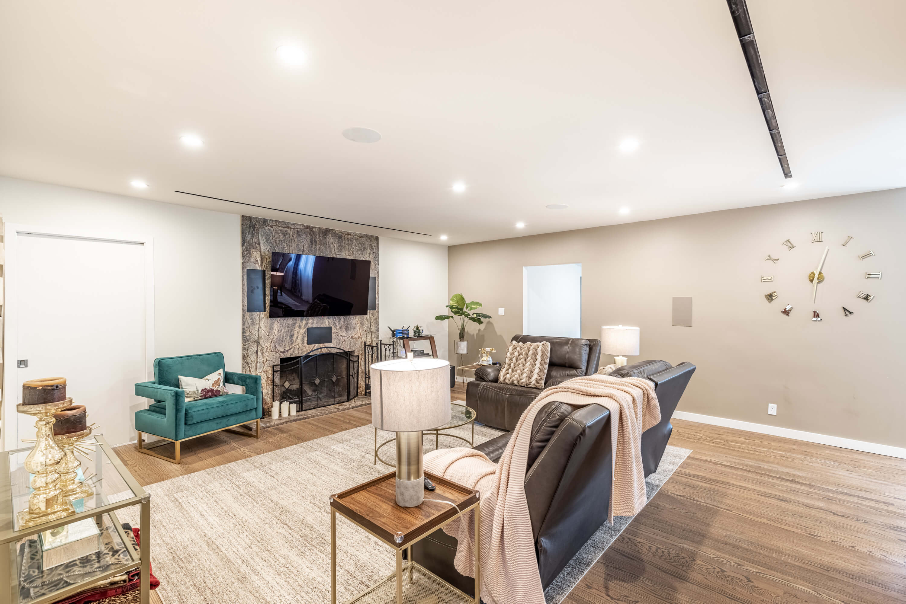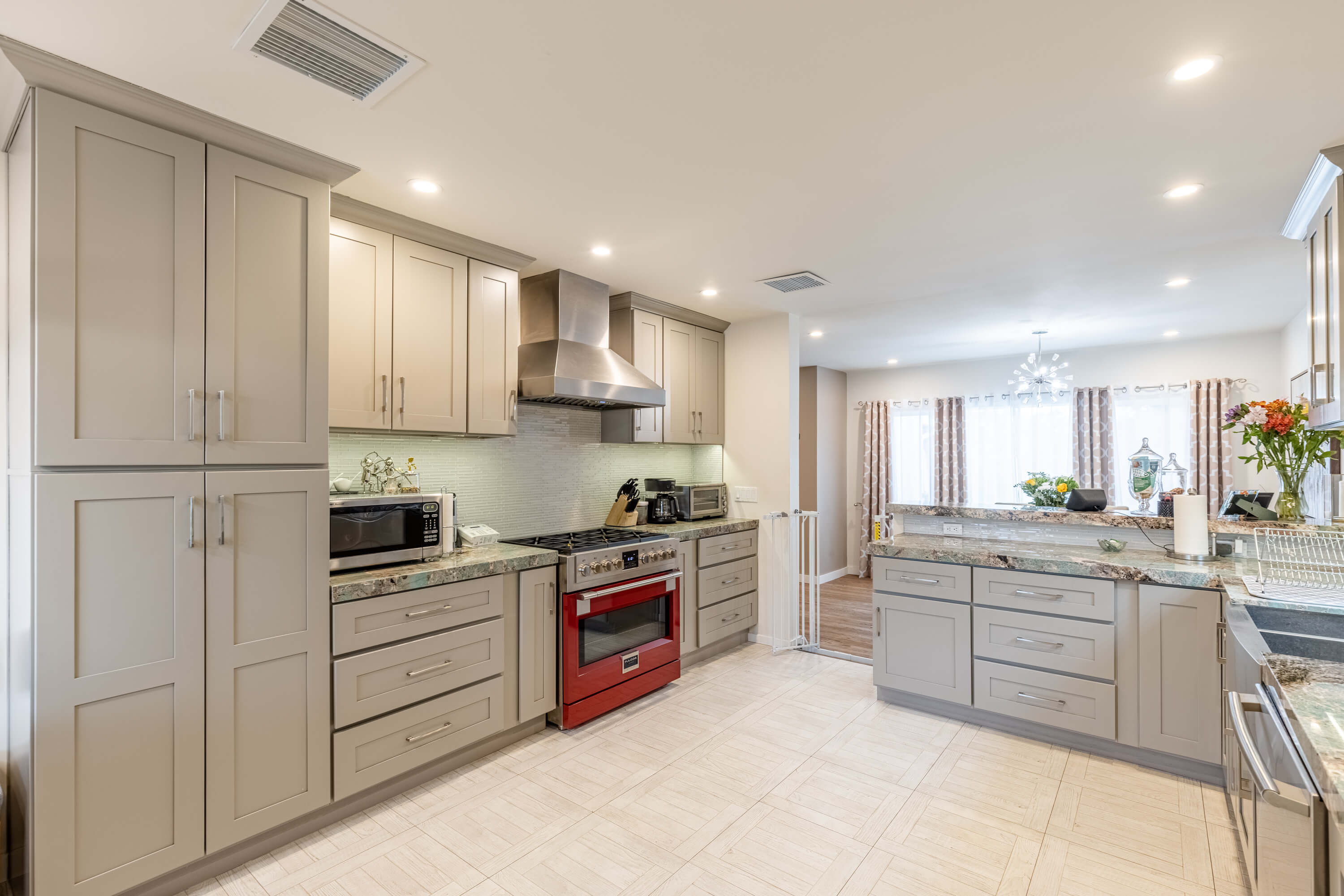 Athena stripped the house to studs, re-planned the layout and added a 400 sq ft master suite. Walls between kitchen, dining and living spaces came down, replaced by a steel beam that creates an open heart anchored by a stone-topped island and pro-grade range. New cedar-slat gates, a wide concrete apron and drought-tolerant planting give the street view fresh presence, while smooth-stucco façades tie old and new volumes together.