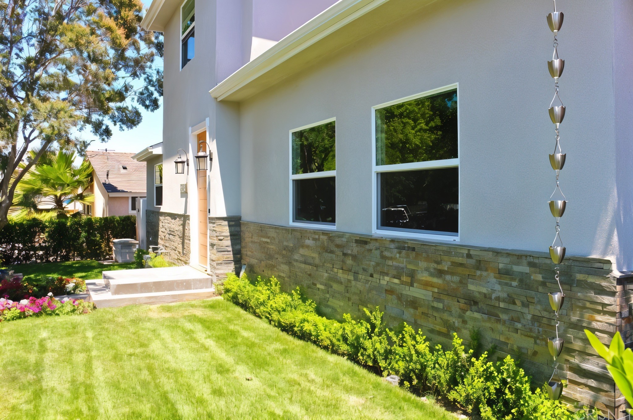 We stripped the structure to framing, inserted steel moment beams and stacked a new second floor without altering the bungalow’s street set-back. Inside, a glass-railed staircase rises through a double-height living room, flooding both levels with light. The re-planned ground floor now features an open chef’s kitchen anchoring living and dining zones, while upstairs hosts four bedrooms, including a palatial primary suite with spa bath and custom walk-through wardrobe.