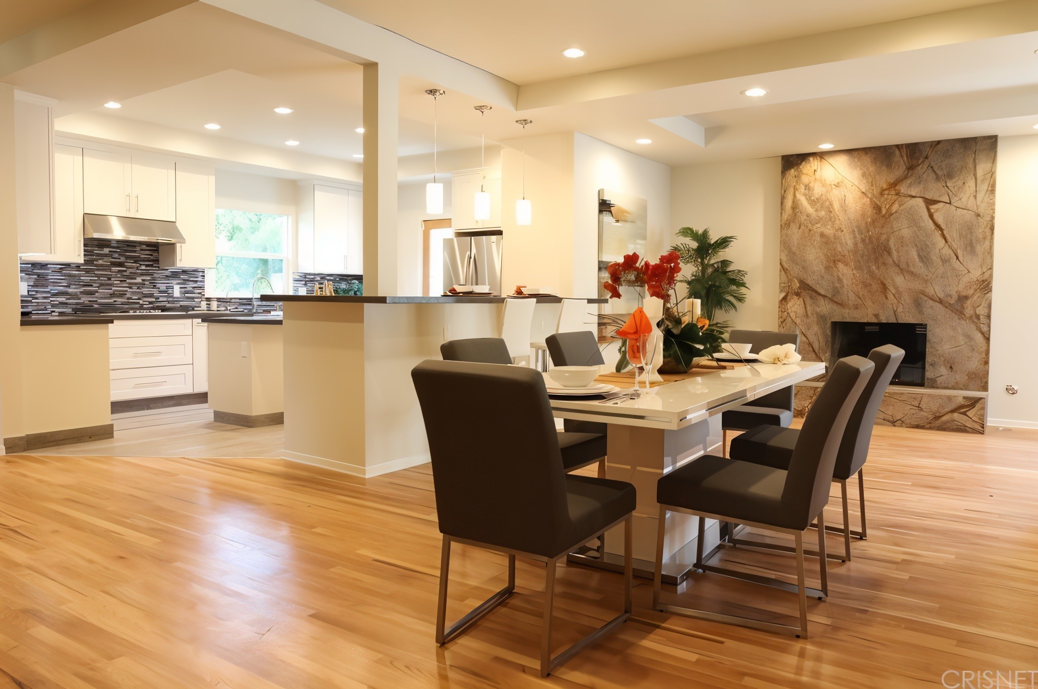 Wide-plank hardwood floors, high-efficiency glazing and spray-foam insulation boost comfort and resale value. A limestone-clad fireplace, stone wainscot and cedar pivot door update the façade, and the existing oval pool was resurfaced to complement new hardscaping. Delivered on time and within budget, the project tripled liveable space and transformed a neglected shell into a sought-after family residence.