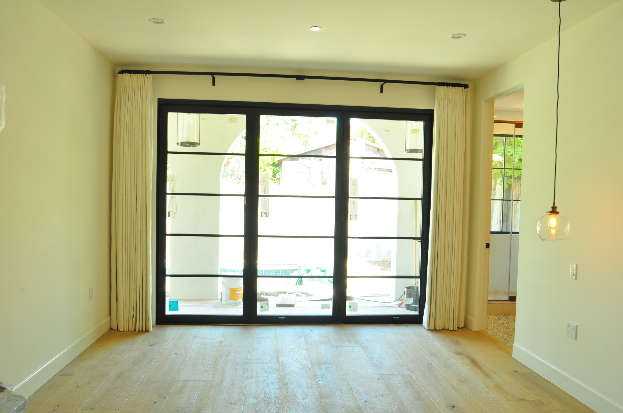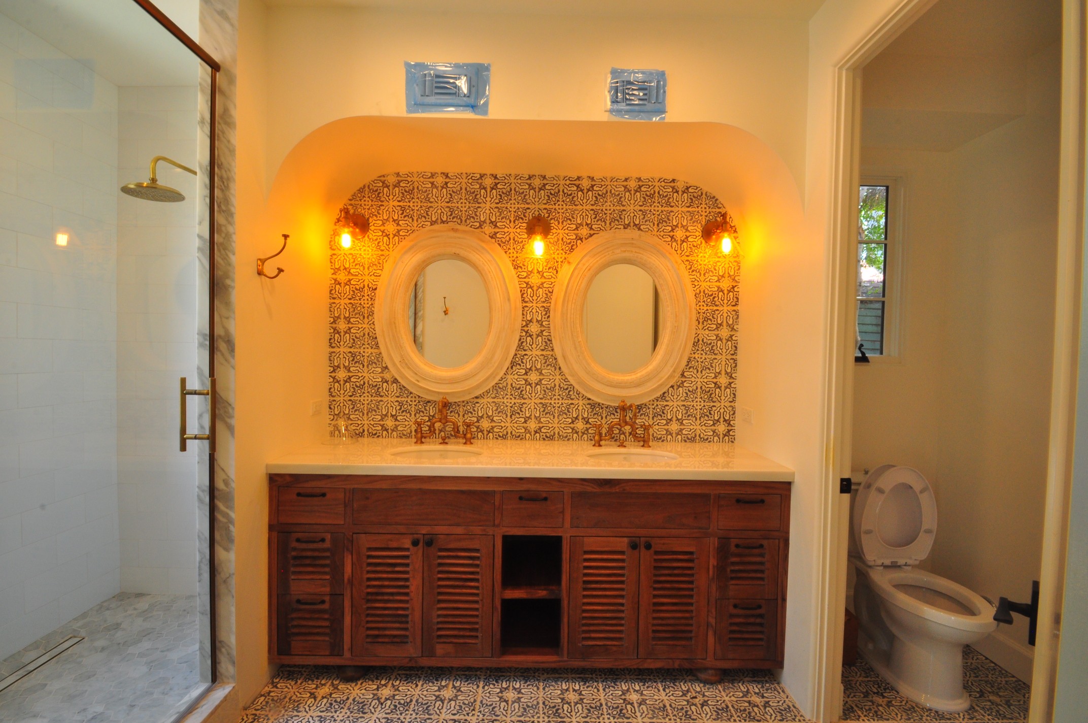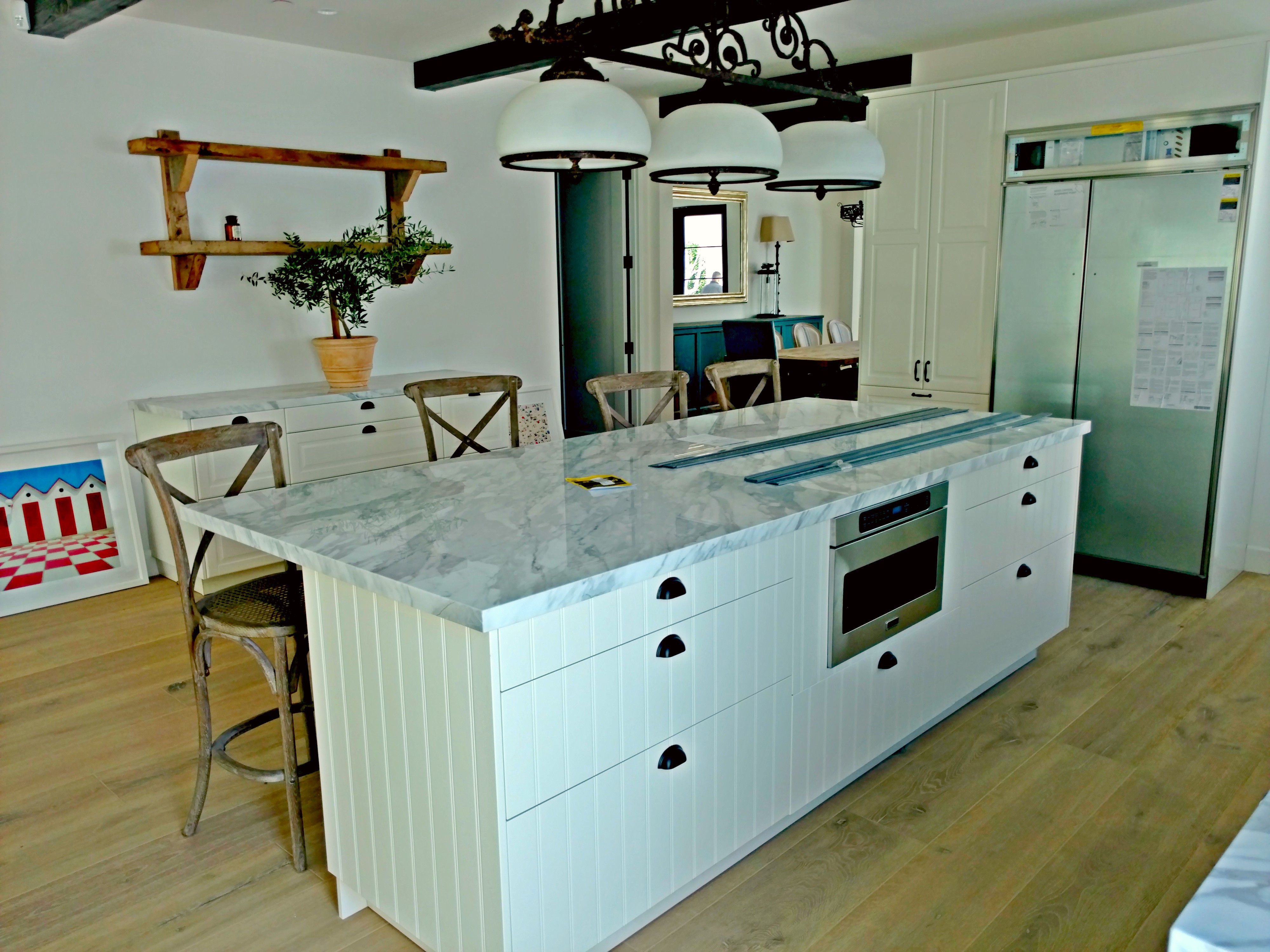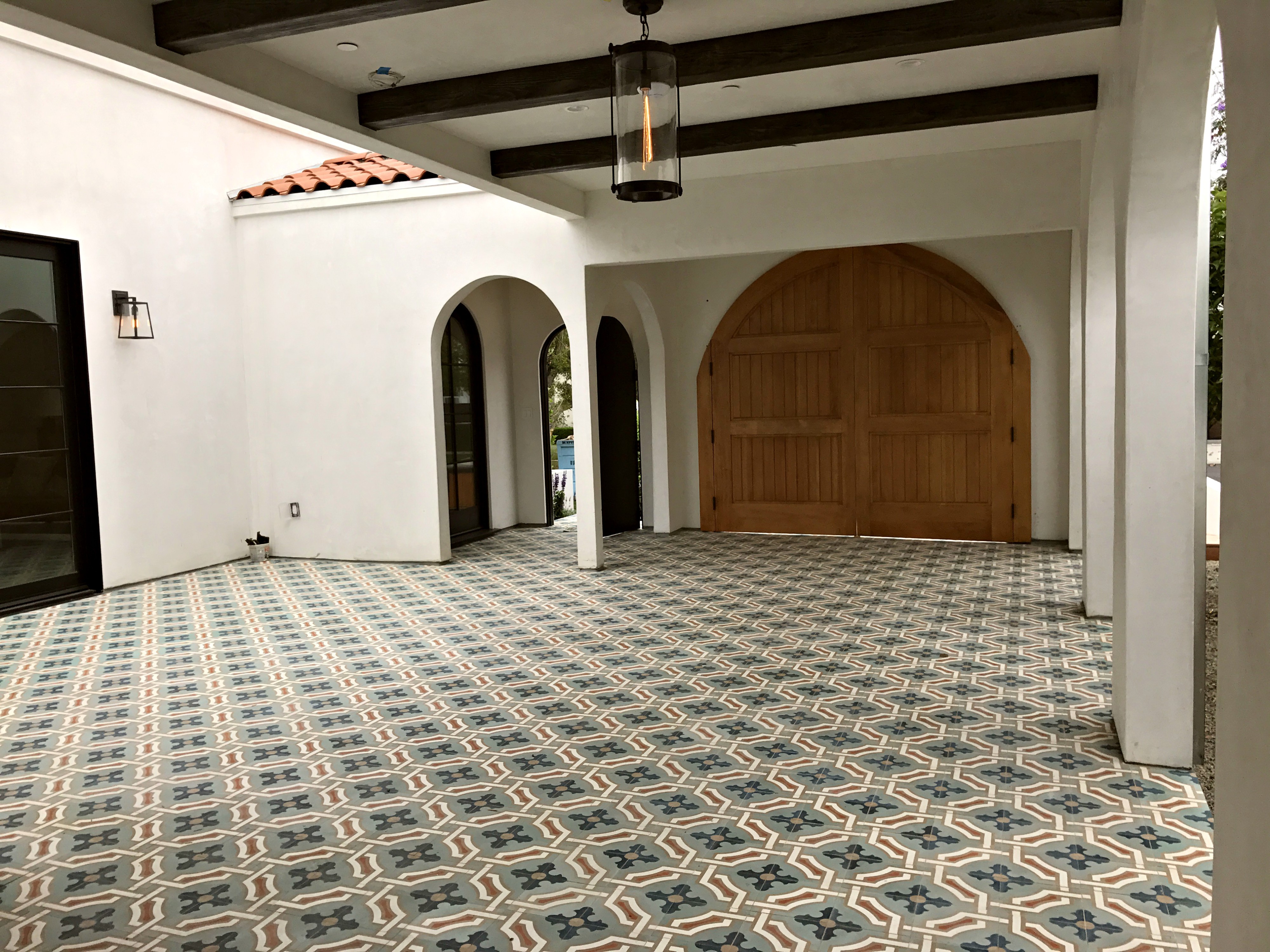 We extended the footprint with a vaulted great-room wing, inserted steel French doors and laid reclaimed hex-tile floors that carry out to the patio. A marble-clad chef’s kitchen anchors the open plan, while exposed ceiling beams, arched windows and hand-trowelled plaster preserve period character. Outside, cedar carriage doors, wrought-iron gates and a terracotta motor court set a warm first impression.