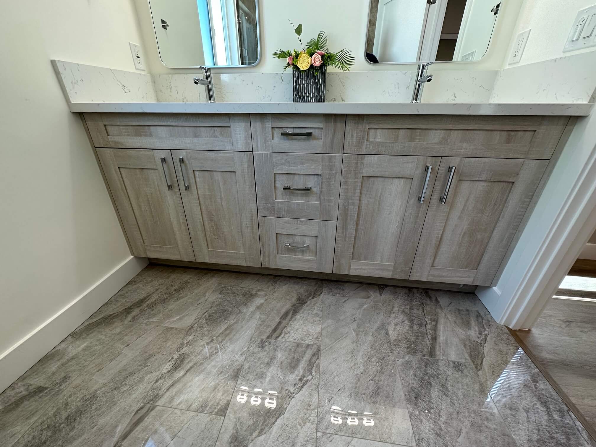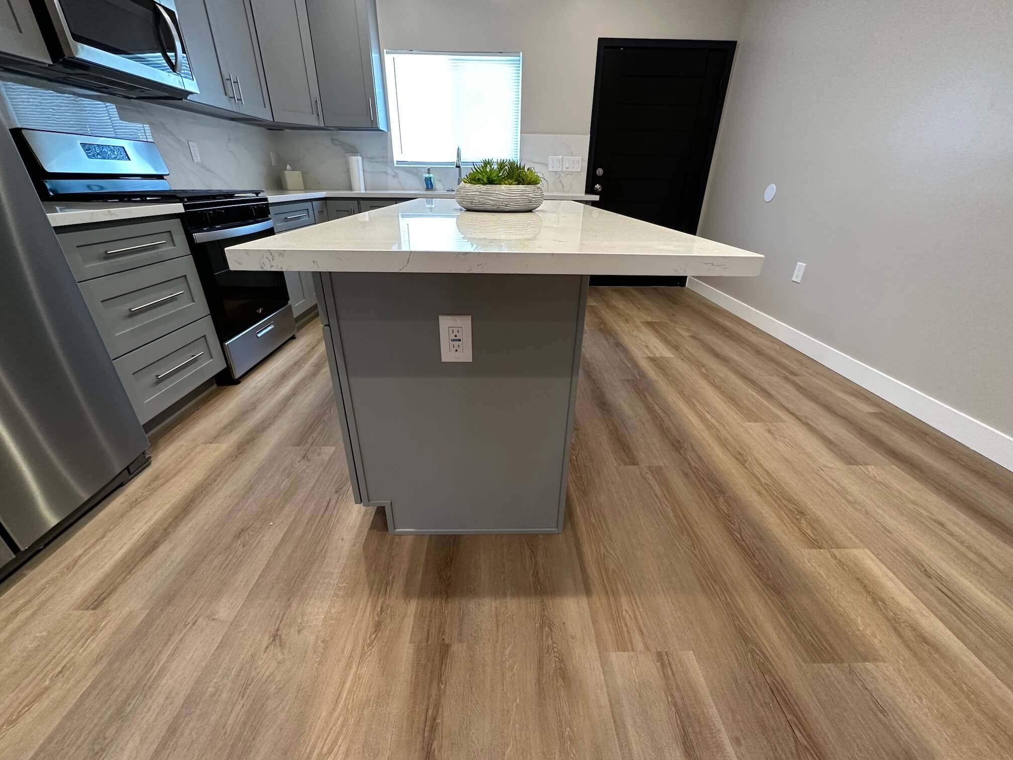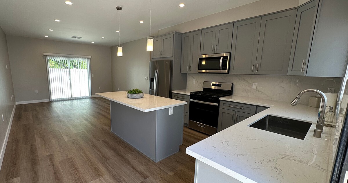This 1,800 sq.ft. accessory dwelling unit turns a deep side yard into a light-filled, two-bed home — finished in cool greys, quartz and wide-plank LVP.